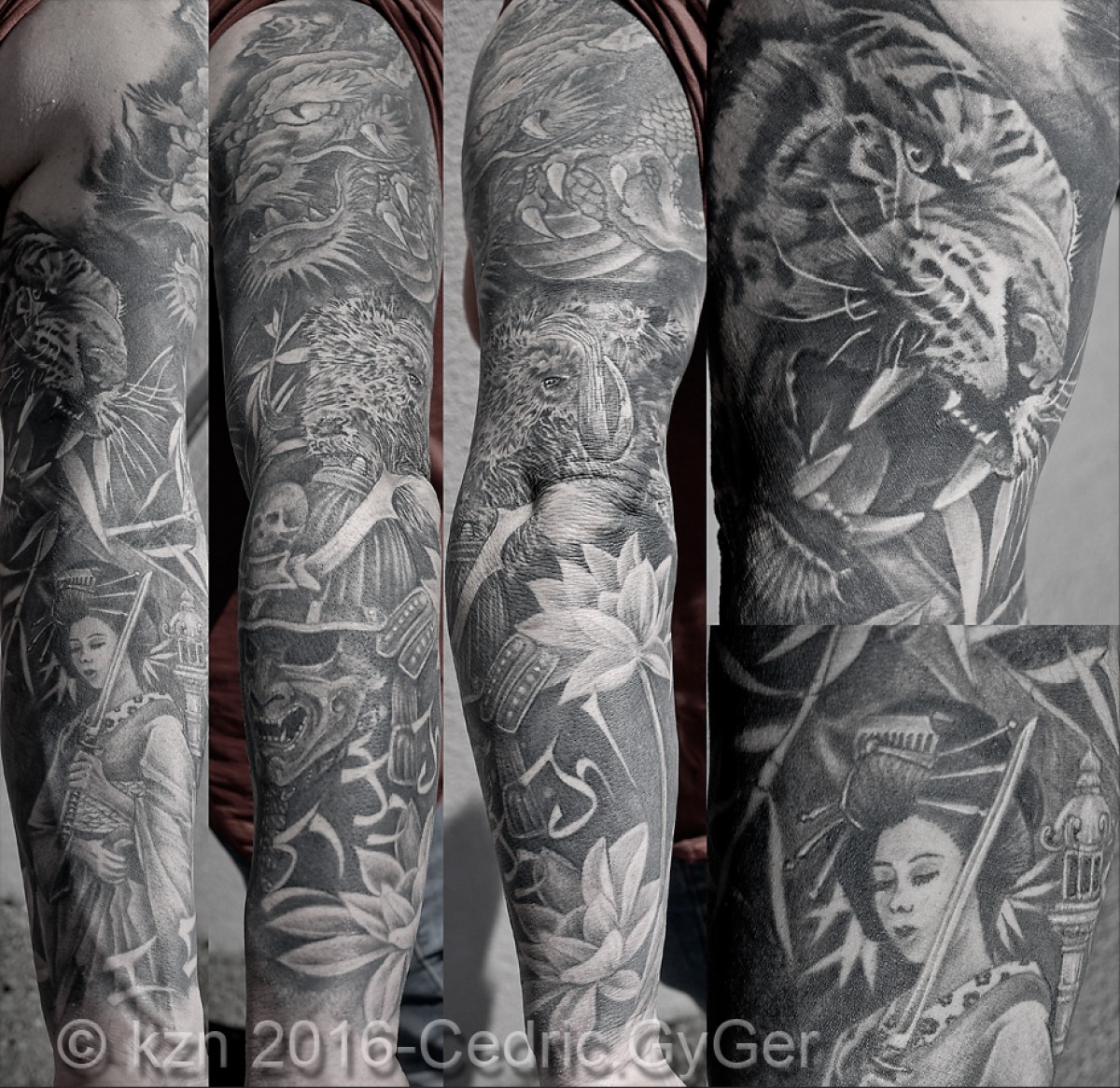 Tradizionale giapponese, Realistico, Nero e grigio, Stencil / Trash-polka