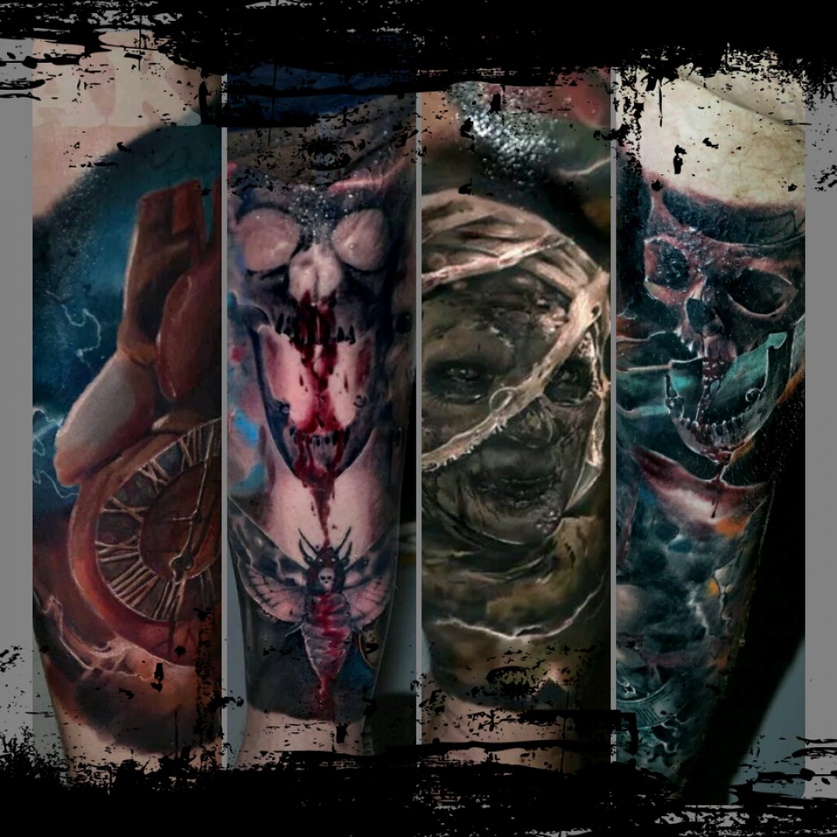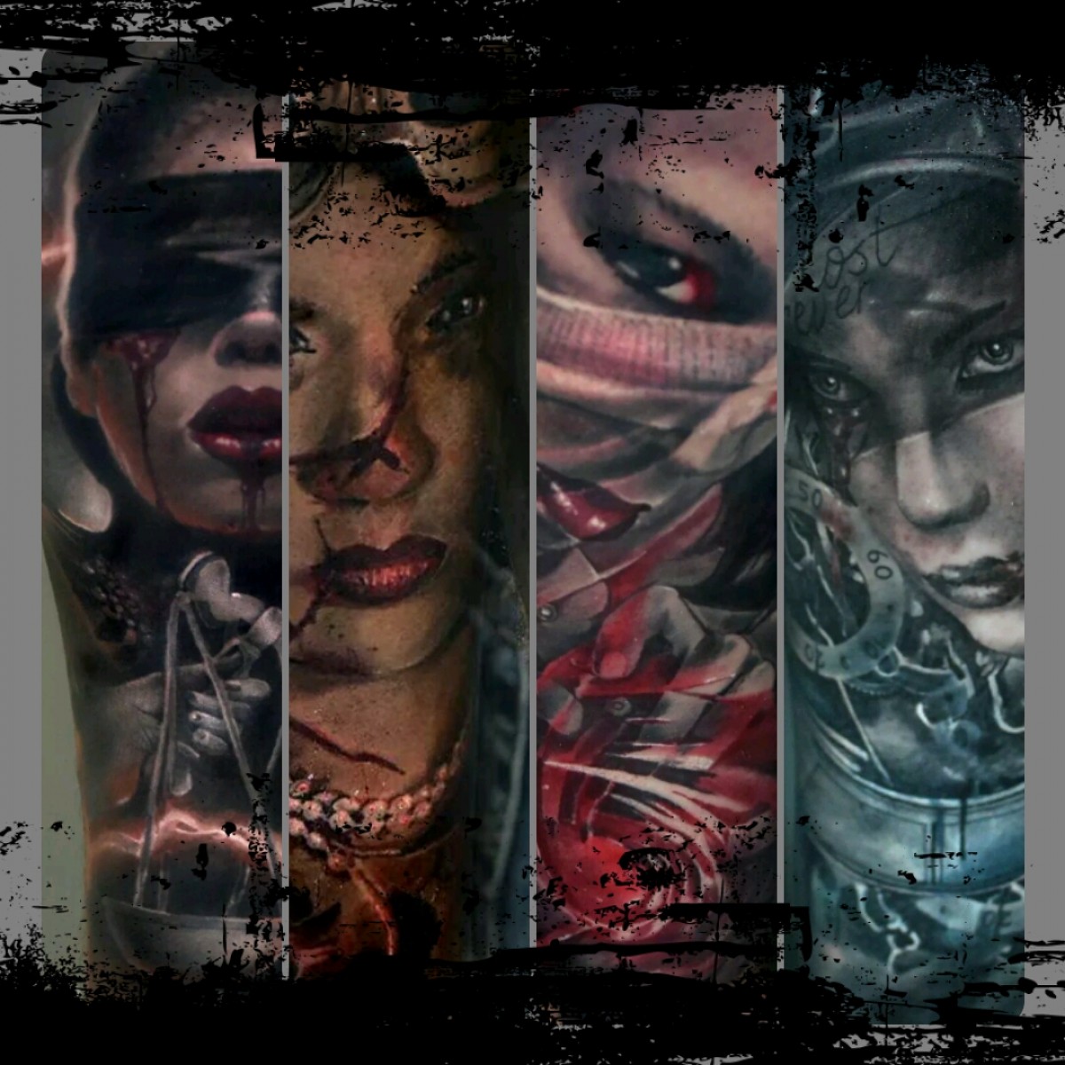 Realistico, Nero e grigio, Gotico, Stencil / Trash-polka
