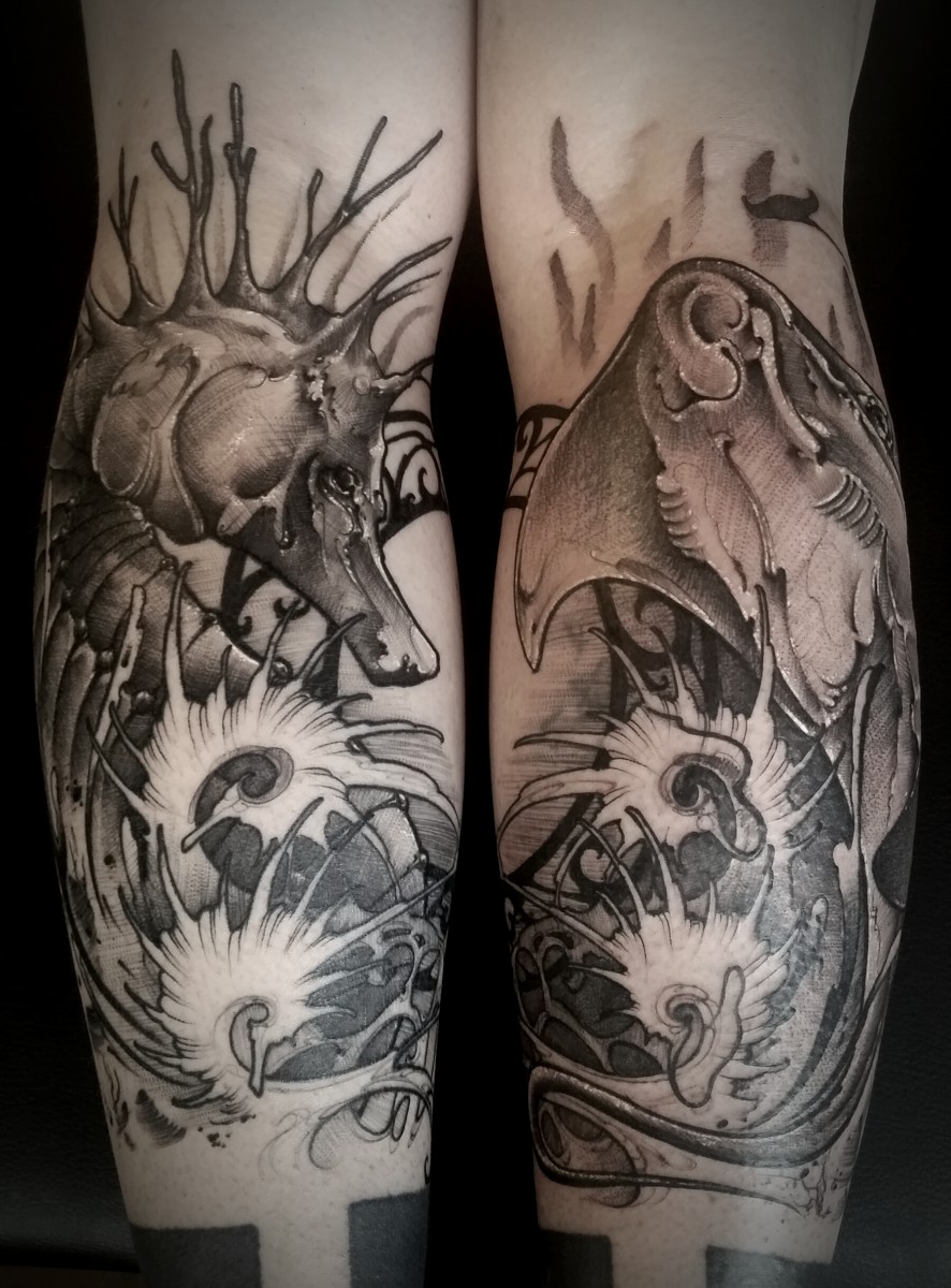 Preto e cinza, neo tradicional, Art nouveau, Black Work